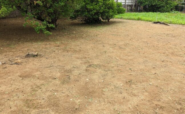 約100平米の空き地の管理に困っていたK様。一度綺麗さっぱりにしてほしいと弊社に要請をしていただきました。草刈り後、草を全て集めて処…